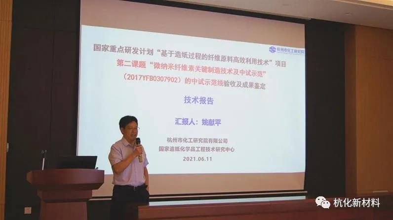 2021年6月11日,國家重點(diǎn)研發(fā)計(jì)劃“基于造紙過程的纖維原料高效利用技術(shù)” 項(xiàng)目第二課題“微納米纖維素關(guān)鍵制造技術(shù)及中試示范” (2017YFB0307902)的中試示范線驗(yàn)收會(huì)議在杭州市化工研究院(國家造紙化學(xué)品工程技術(shù)研究中心)青山湖科創(chuàng)基地召開,經(jīng)驗(yàn)收委員會(huì)專家審查和評(píng)定,中試示范線順利通過驗(yàn)收。